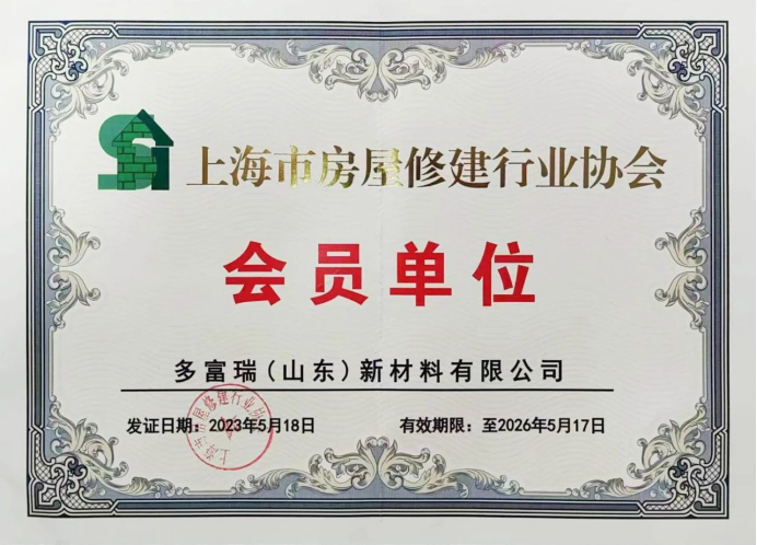 2月,加入上海房屋修繕協(xié)會(huì)和上海市房屋修建行業(yè)協(xié)會(huì),體現(xiàn)多富瑞積極為客戶提供高質(zhì)量產(chǎn)品和全方位服務(wù)的決心、信心,同時(shí)也是提升產(chǎn)品知名度的重要舉措之一。